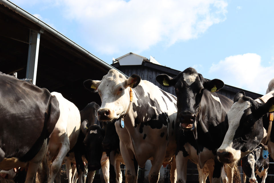Unsere Kühe genießen großzügige Weideflächen und komfortable Stallungen, die ihrem natürlichen Verhalten gerecht werden. Sie werden mit biologisch-dynamischem Futter gefüttert, das größtenteils auf unseren eigenen Feldern angebaut wird.